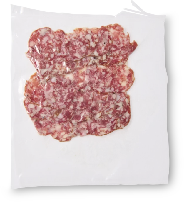Kruidige salami die zorgt voor de kenmerkende, hartige smaak van deze pizza.