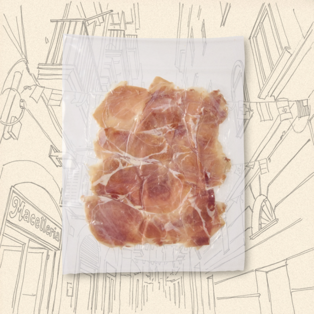 Deze ham wordt dun gesneden en is direct klaar voor gebruik. Ideaal om koud te serveren, of om na het bakken toe te voegen aan pizza voor een echte Italiaanse beleving.